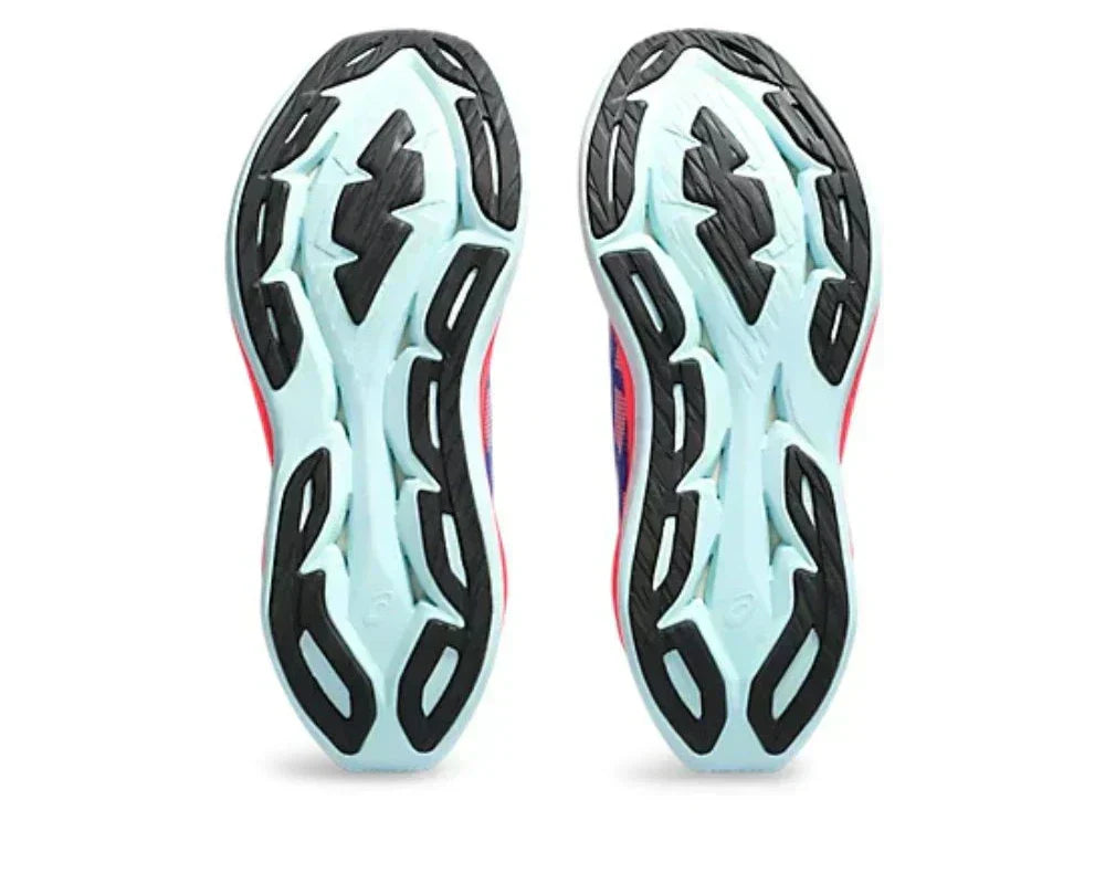 FF BLAST+™: Espuma responsiva localizada na entressola ainda mais leve e macia do que o FF BLAST que proporciona amortecimento energizado durante o ciclo da passada. AHAR™: A tecnologia do solado resistente à abrasão da ASICS tem um maior teor de carbono, tornando a sola mais durável e flexível. FLYTEFOAM ™ TURBO É a espuma mais inovadora e tecnológica, oferecendo mais leveza e retorno máximo de energia já criada atualmente nos tênis de corrida da ASICS. Ela ajuda a gerar variações excelentes e responsivas. Benefícios: responsividade, energia, leveza e conforto.