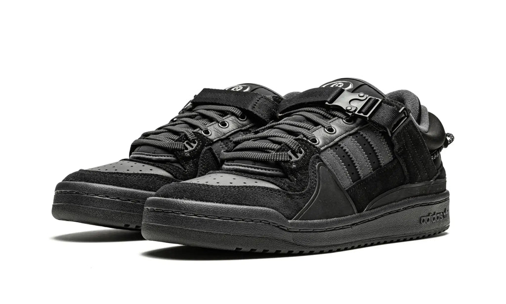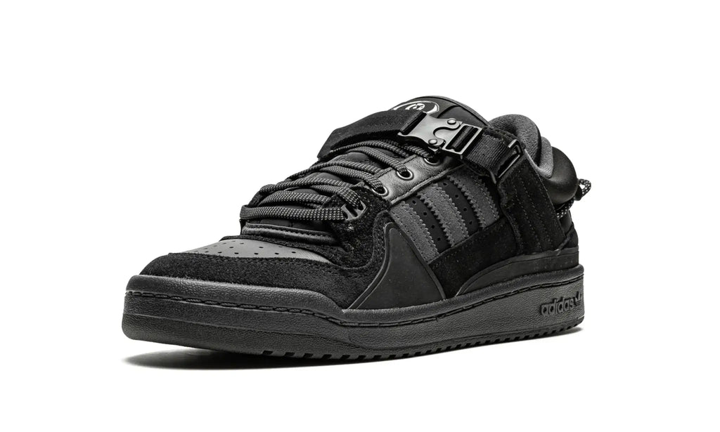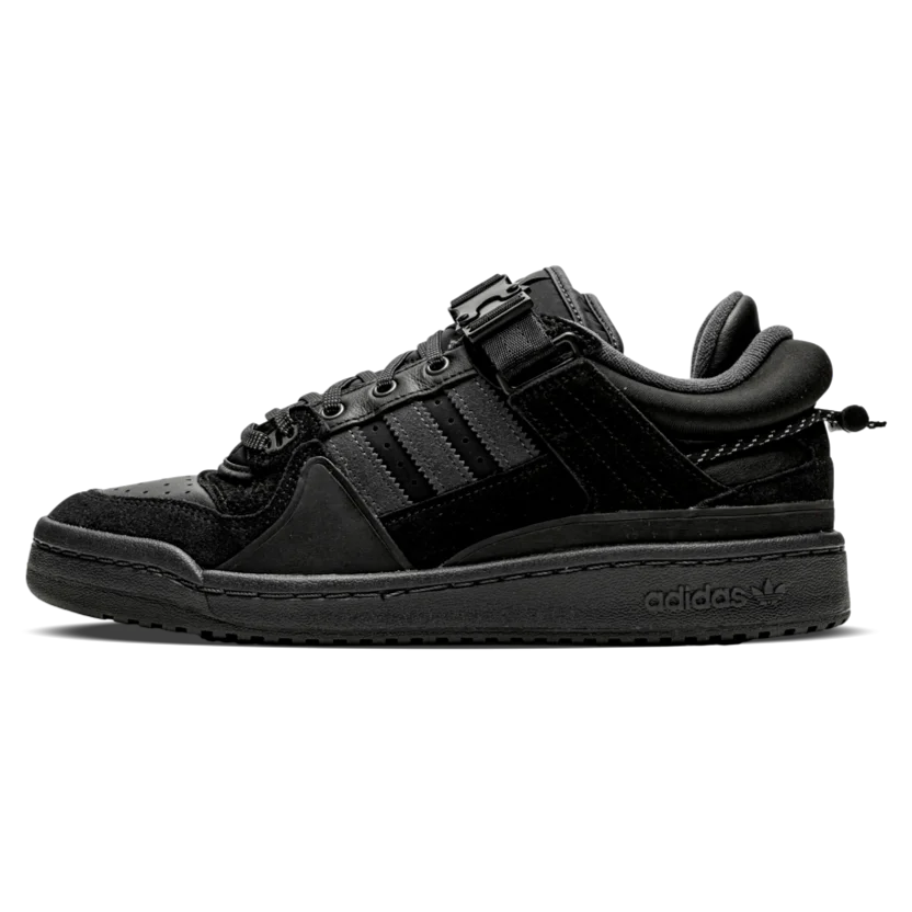Além de contar com detalhes como a fivela removível, língua dupla e acolchoamento em volta da parte interna e o visual se completa com a sola de borracha. Este adidas Forum Bad Bunny preto é uma das melhores cores de toda a coleção Forum.